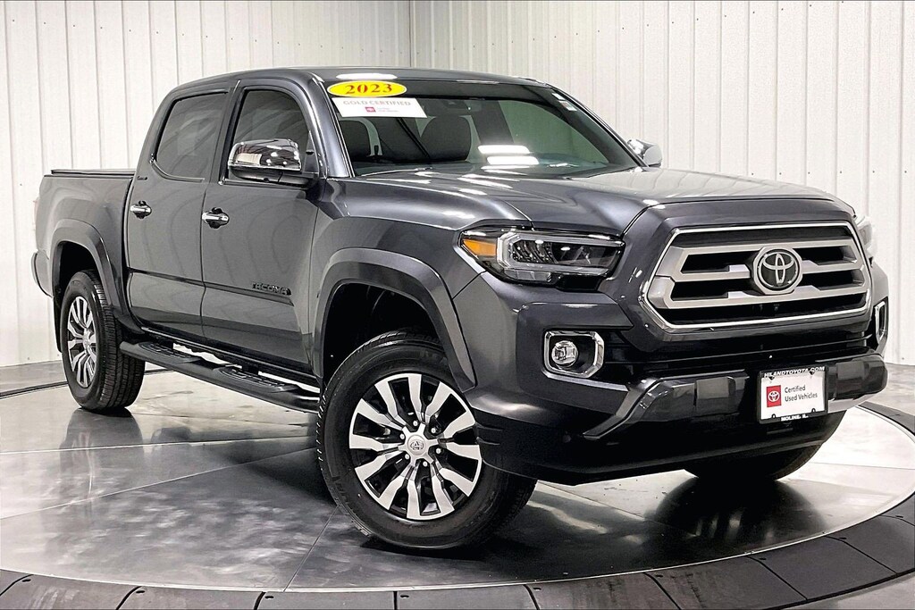 ***Navigation***Sunroof***Backup Camera***Leather***Heated Mirrors***Heated Front Seats***Bluetooth Connection***MP3 Player***Accident Free***One Owner - Our Toyota has aced its 160 Point Inspection qualifying it as a Certified and has a complete history report. Toyota adds an additional 12 Month/12,000 Mile Comprehensive Warranty, plus a 7 Year/100,000 Mile Powertrain Limited Warranty and so much more. Ask us for Details! Raise the bar in our 2023 Toyota Tacoma Limited Double Cab 4X4 that's ready with refined capability in Magnetic Gray Metallic! Powered by a 3.5 Liter V6 that supplies 278hp to a 6 Speed Automatic transmission so you can pull with premium confidence. You can also tame harsh conditions with an automatic limited-slip differential and 2-speed transfer case, and this Four Wheel Drive truck sees nearly 22mpg on the highway. Bold style comes into view with our Tacoma's LED lighting, fog lamps, chrome accents, a power sunroof, an in-bed 120V/400W power outlet, bed liner, running boards, a tonneau cover, chrome-finished alloy wheels, and a rugged composite bed.