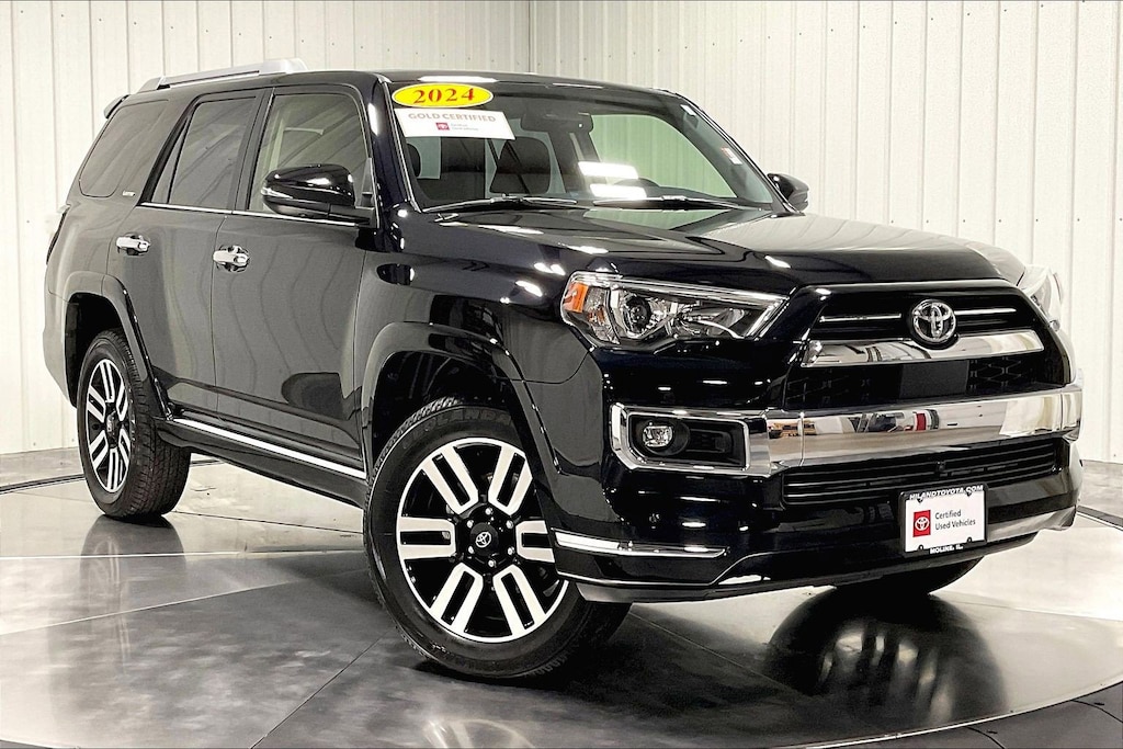 ***Third Row***Navigation***Sunroof***Surround View Monitor***Leather***Heated Steering Wheel***Heated/Ventilated Front Seats***Bluetooth Connection***MP3 Player***Accident Free - Our Toyota has aced its 160 Point Inspection qualifying it as a Certified and has a complete history report. Toyota adds an additional 12 Month/12,000 Mile Comprehensive Warranty, plus a 7 Year/100,000 Mile Powertrain Limited Warranty and so much more. Ask us for Details! Folks love our 2024 Toyota 4Runner Limited 4WD for its rugged capability and refined comfort in Midnight Black Metallic! Motivated by a 4.0 Liter V6 delivering 270hp to a 5 Speed Automatic transmission engineered for relentless strength. An X-REAS suspension, a Torsen limited-slip differential, and active traction control help you handle rough terrain, and this Four Wheel Drive SUV scores nearly 19mpg on the highway with a distinctive design. Fantastic 4Runner details include a power sunroof, LED lighting, fog lamps, a power liftgate window, 20-inch alloy wheels, roof rails, a front skid plate, and multifunction mirrors.