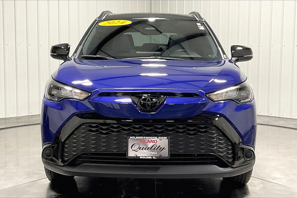 ***Sunroof***Backup Camera***Heated Mirrors***Keyless Start***Bluetooth Connection***MP3 Player***Accident Free***One Owner -- Our Toyota has aced its 160 Point Inspection qualifying it as Gold Certified and has a complete history report. Toyota adds an additional 12 Month/12,000 Mile Comprehensive Warranty, plus a 7 Year/100,000 Mile Powertrain Limited Warranty and so much more. Ask us for Details! A sporty choice, our 2024 Toyota Corolla Cross Hybrid SE AWD with a Sunroof is ready for uncharted territory in Blue Crush Metallic w/ Jet Black Roof! Motivated by a 2.0 Liter 4 Cylinder and an Electric Motor supplying a combined 196hp to a paddle-shifted CVT for dominating busy days. Also able to see nearly 45mpg in the city, this All Wheel Drive SUV crosses over the road to achieve nearly 38mpg on the highway. Deluxe exterior details like a power sunroof, LED lighting, bold black fender moldings, matching rocker panels, alloy wheels, roof rails, a rear spoiler, and heated power mirrors with built-in turn signals.