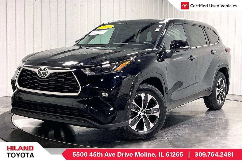 Toyota provides high-tech passenger protection with automatic braking, lane-keeping assistance, a rearview camera, blind-spot monitoring, adaptive cruise control, and more to help keep your family safe. Now take off in our Highlander XLE for trail-blazing good times! Save this Page and Call for Availability. We Know You Will Enjoy Your HILAND TOYOTA Test Drive Towards Ownership! Stop by and visit us at Hiland Toyota, 5500 45Th Avenue Dr, Moline, IL 61265.