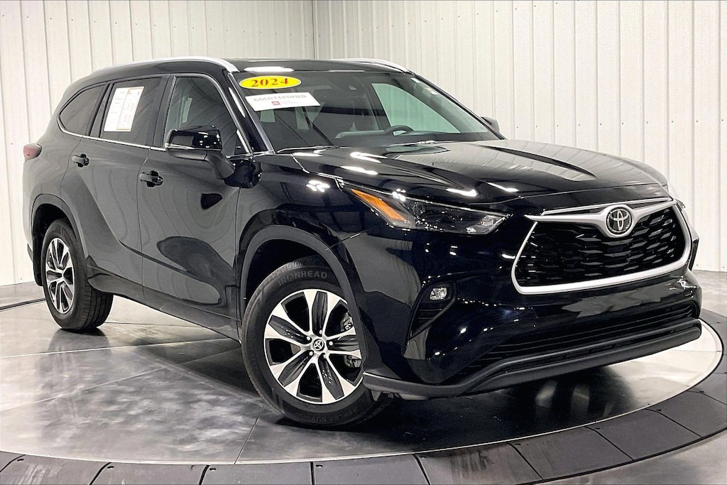 ***Sunroof***Backup Camera***Heated Seats***Keyless Start***Bluetooth Connection***MP3 Player***Accident Free***One Owner -- Our Toyota has aced its 160 Point Inspection qualifying it as a Certified and has a complete history report. Toyota adds an additional 12 Month/12,000 Mile Comprehensive Warranty, plus a 7 Year/100,000 Mile Powertrain Limited Warranty and so much more. Ask us for Details! Our adventurous 2024 Toyota Highlander XLE AWD is bold and athletic in Midnight Black Metallic! Motivated by a TurboCharged 2.4 Liter 4 Cylinder offering 265hp to an 8 Speed Automatic transmission enhanced by a terrain management system. Also a capable towing machine, this All Wheel Drive SUV combines responsive handling with the ability to see nearly 28mpg on the highway. Robust and ready for action, our Highlander helps you stand out with a power sunroof, LED lighting, fog lamps, a hands-free liftgate, silver-painted roof rails, bold rocker panels, and alloy wheels.
