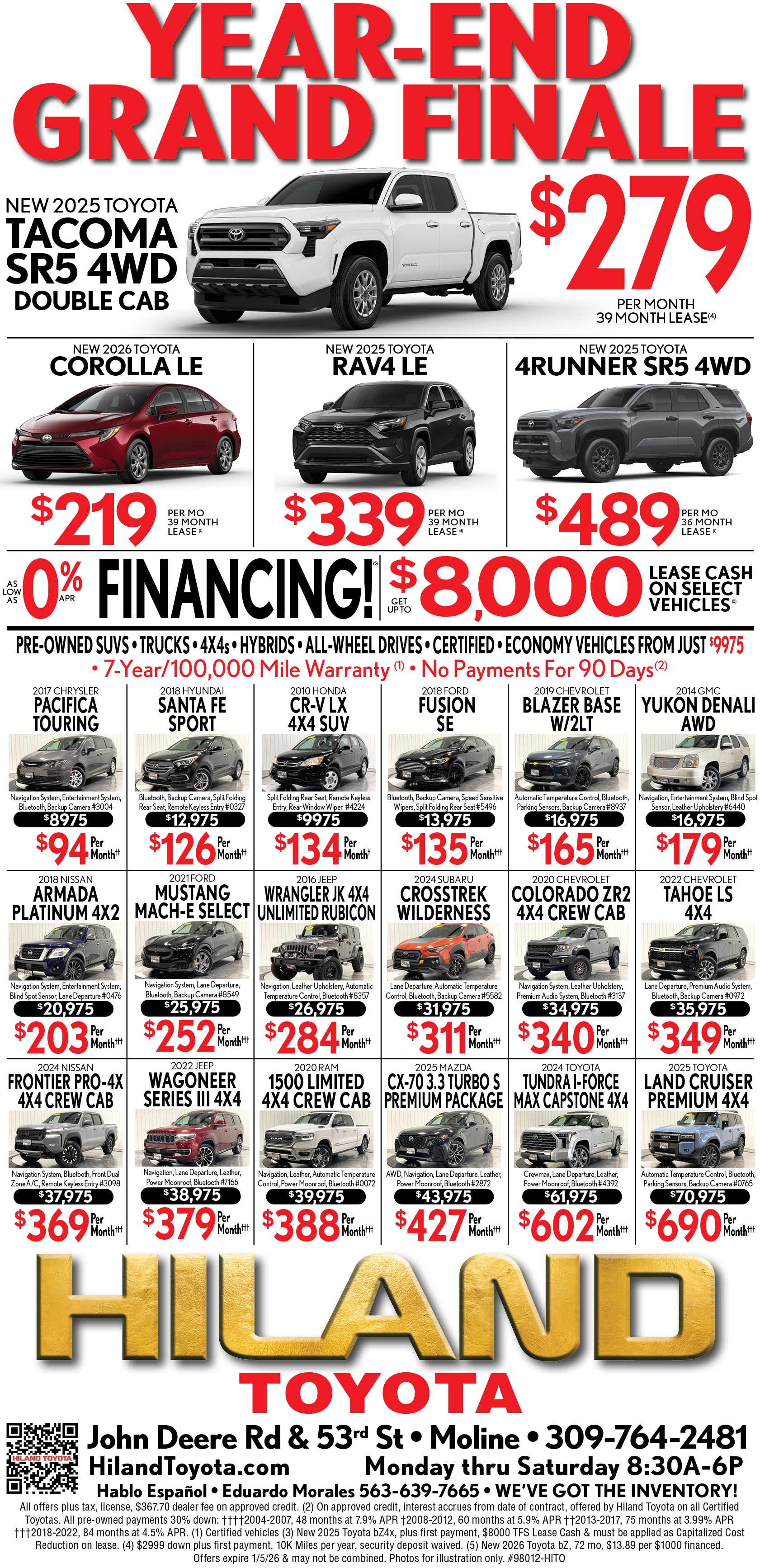 Looking for Low Payments on a Used Car Visit Hiland Toyota Ottumwa, IA