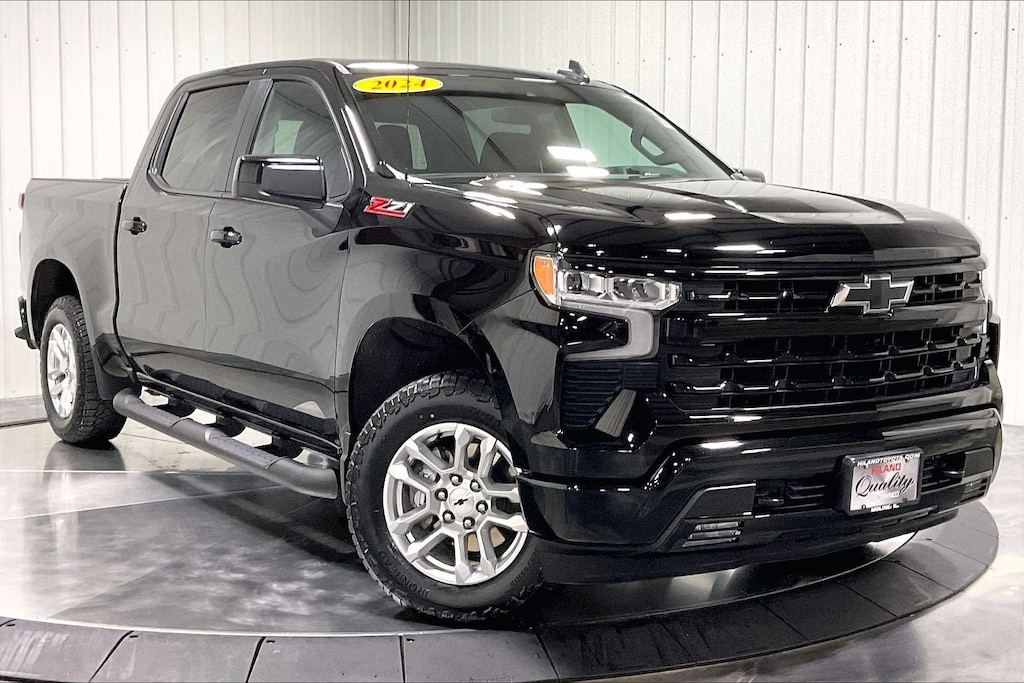 ***Backup Camera***Heated Seats***Heated Steering Wheel***Bose Audio***Keyless Start***Bluetooth Connection***MP3 Player***Accident Free***One Owner -- Our 2024 Chevrolet Silverado 1500 RST Crew Cab 4X4 Short Bed with the Convenience II/Z71 Off-Road/Protection/Trailering Packages is muscular, stylish, and made to do more in Black! Motivated by a 5.3 Liter V8 supplying 355hp to a 10 Speed Automatic transmission for confident capability whether working hard or just showing off. A 2-speed transfer case enhances traction, and this Four Wheel Drive truck is a robust towing machine that can score nearly 20mpg on the highway. Our Silverado builds on that solid foundation with a sophisticated design, LED lighting, fog lamps, alloy wheels, a spray-on bedliner, an EZ Lift power lock/release tailgate, a trailer hitch, a 120V outlet, corner steps, black assist steps, and a black Bowtie on its bold grille.