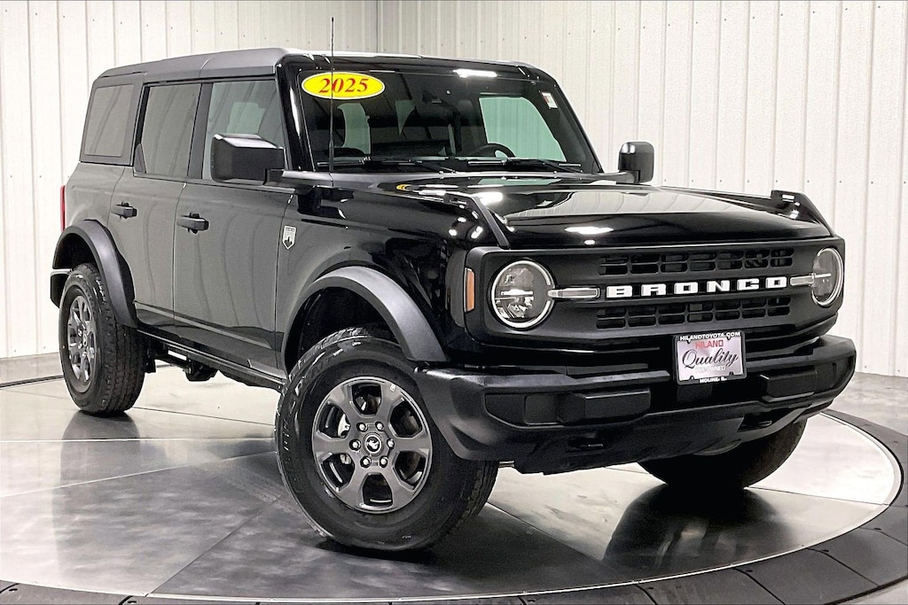 ***Hard Top, Gray Molded-In-Color***Navigation***Backup Camera***Heated Seats***Keyless Start***Bluetooth Connection***MP3 Player***Accident Free***One Owner -- Our 2025 Ford Bronco Big Bend 4 Door 4X4 with the Mid 222A Pack helps get adventures off to a great start in Shadow Black! Powered by a TurboCharged 2.3 Liter EcoBoost 4 Cylinder supplying 300hp to a 10 Speed Automatic transmission with multiple terrain modes. This Four Wheel Drive SUV also handles with calm composure on the street or off, thanks to a HOSS 1.0 suspension, and it scores nearly 21mpg on the highway with an unmistakable design. Bold Bronco details include LED lighting, alloy wheels, tow hooks, heated power mirrors, a removable top/doors, and a convenient swing-out tailgate for carrying cargo.