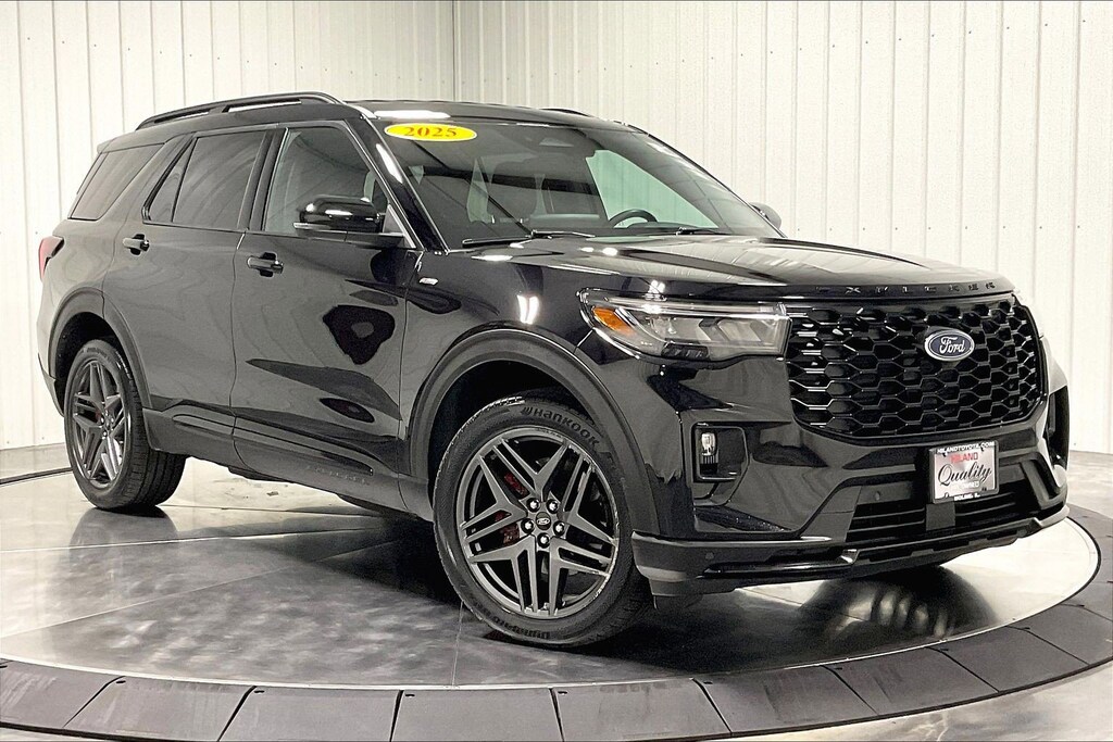 ***Backup Camera***Heated Seats***Heated Steering Wheel***B&O Sound***Keyless Start***Bluetooth Connection***MP3 Player***Accident Free***One Owner -- Our 2025 Ford Explorer ST-Line 4WD with the Street Pack is sporty, spirited, and aerodynamic in Agate Black Metallic! Motivated by a TurboCharged 2.3 Liter EcoBoost 4 Cylinder providing 300hp to a 10 Speed Automatic transmission enhanced by multiple drive modes. This Four Wheel Drive SUV also rides on a responsive suspension, scores nearly 27mpg on the highway, and shows off performance-inspired styling. Our Street Pack's incredible 21-inch wheels with performance brakes and red calipers upgrade our Explorer's standard black roof rails, black skid-plate elements, a power liftgate, and LED lighting with fog lamps and signature lighting. It's a look for owners who love adventure!