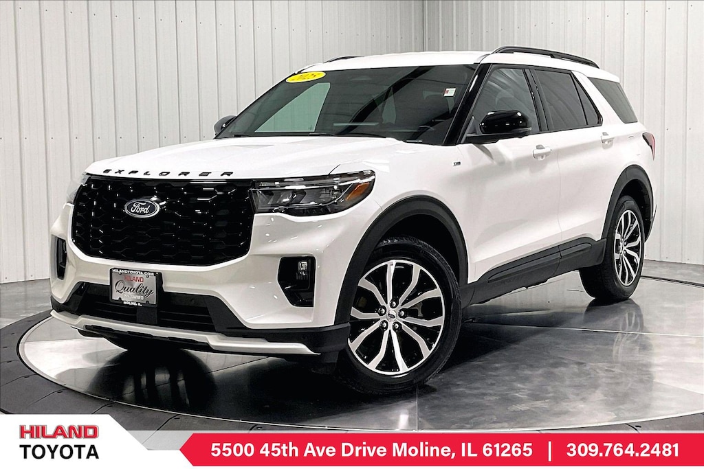 Ford supports safer travel with front/rear automatic braking, blind-spot monitoring, lane-keeping assistance, a rearview camera, rear parking sensors, trailer sway control, tire pressure monitoring, and more. Our Explorer ST-Line is a capable towing machine that can help your family pull through the tough spots! Save this Page and Call for Availability. We Know You Will Enjoy Your HILAND TOYOTA Test Drive Towards Ownership! Stop by and visit us at Hiland Toyota, 5500 45Th Avenue Dr, Moline, IL 61265.