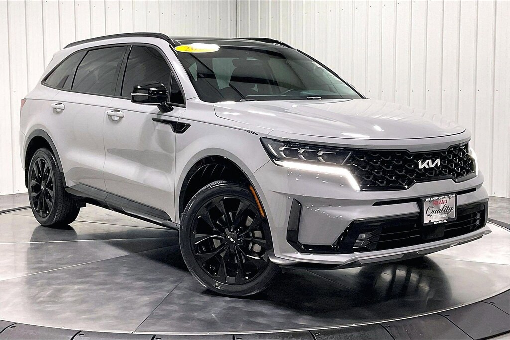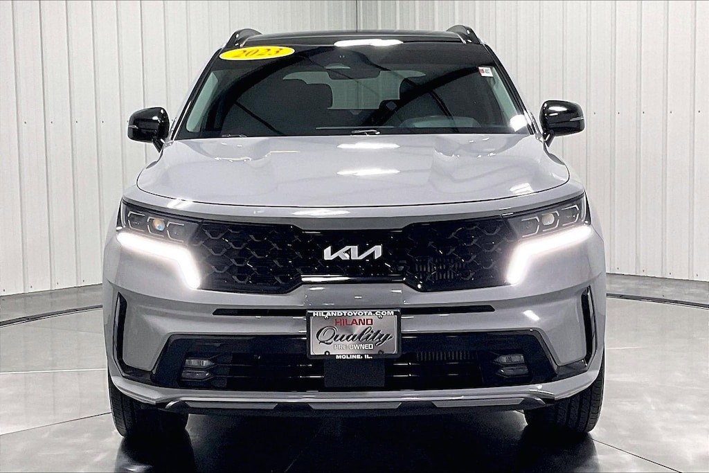 ***Navigation***Sunroof***Backup Camera***SynTex Seating***Heated Mirrors***Heated Front Seats***Bluetooth Connection***MP3 Player***Accident Free***One Owner - Poised and powerful, our 2023 Kia Sorento SX AWD is here to help you explore without limits in Wolf Gray! Motivated by a TurboCharged 2.5 Liter 4 Cylinder that provides 281hp tethered to an 8 Speed Automatic Dual-clutch transmission for confident command of your next trip. This All Wheel Drive SUV is also easy to maneuver and terrific at towing, and it scores nearly 27mpg on the highway. All that versatility comes with vibrant style, as our Sorento rides with LED lighting, fog lamps, a panoramic sunroof, a hands-free tailgate, 20-inch gloss-black wheels, and matching accents.