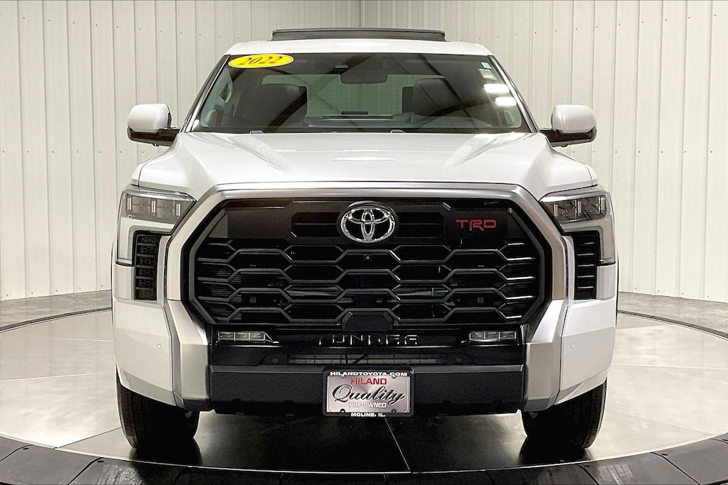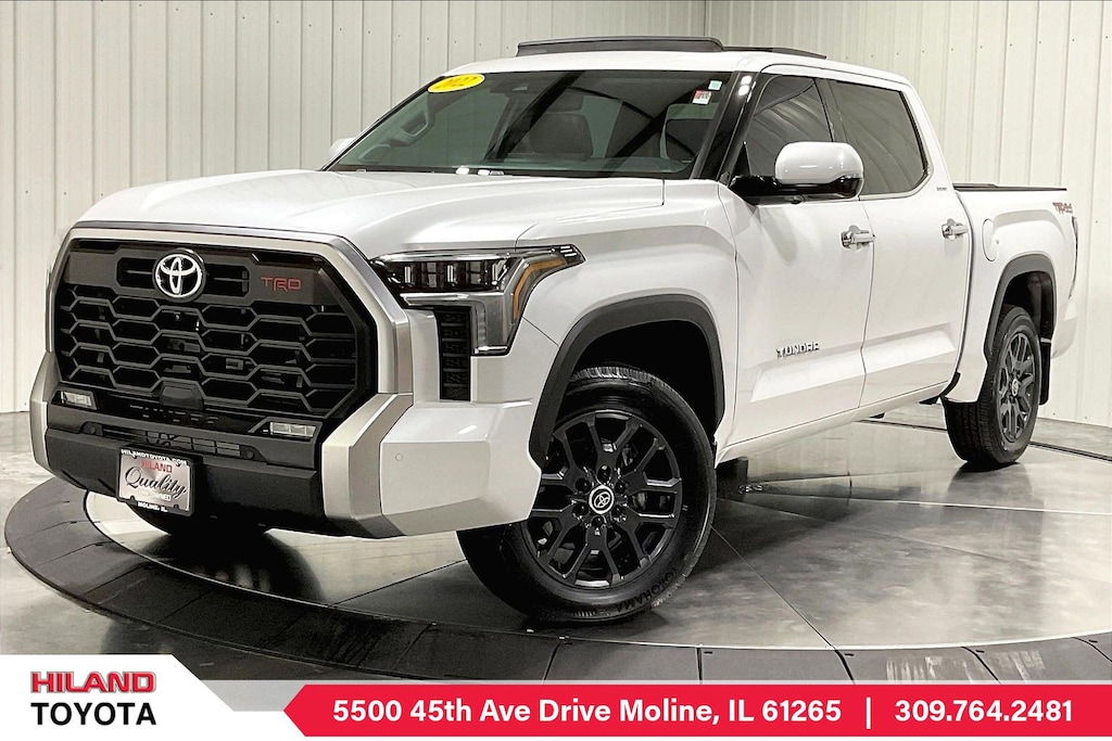 Toyota complements our truck's rugged spirit with intelligent safety measures such as front/rear automatic braking, blind-spot monitoring, adaptive cruise control, a rearview camera, lane-keeping assistance, and our package for a Trailer Backup Guide system and a multi-terrain monitor. When it comes to better trucking, our Tundra Limited takes the prize! Save this Page and Call for Availability. We Know You Will Enjoy Your HILAND TOYOTA Test Drive Towards Ownership! Stop by and visit us at Hiland Toyota, 5500 45Th Avenue Dr, Moline, IL 61265.