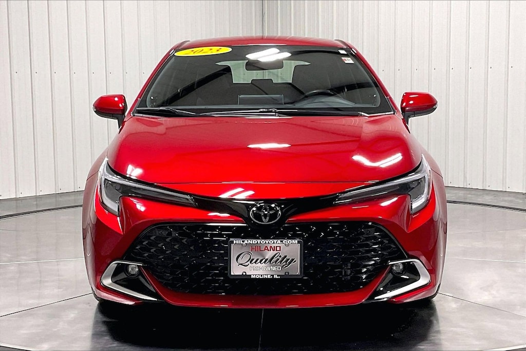 ***Backup Camera***Heated Seats***Keyless Start***Bluetooth Connection***MP3 Player -- Well equipped, our 2023 Toyota Corolla XSE Hatchback is athletically appealing in Finish Line Red! Powered by a 2.0 Liter 4 Cylinder that provides 169hp to a paddle-shifted CVT. With that and a special Sport mode, our Front Wheel Drive hatchback is fun to pilot and returns nearly 41mpg on the highway. High-performance style cues for our Corolla include LED lighting, fog lamps, a gloss-black grille, heated power mirrors, bold rocker panels, a rear spoiler, chrome dual chrome-colored exhaust accents, and alloy wheels.