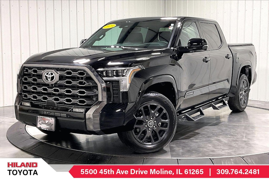Toyota's sophisticated safety systems help boost your confidence with a digital rearview mirror, a panoramic view monitor, front/rear automatic braking, blind-spot monitoring, adaptive cruise control, and more. Boasting true truck appeal, our Tundra Platinum inspires drivers to do more! Save this Page and Call for Availability. We Know You Will Enjoy Your HILAND TOYOTA Test Drive Towards Ownership! Stop by and visit us at Hiland Toyota, 5500 45Th Avenue Dr, Moline, IL 61265.