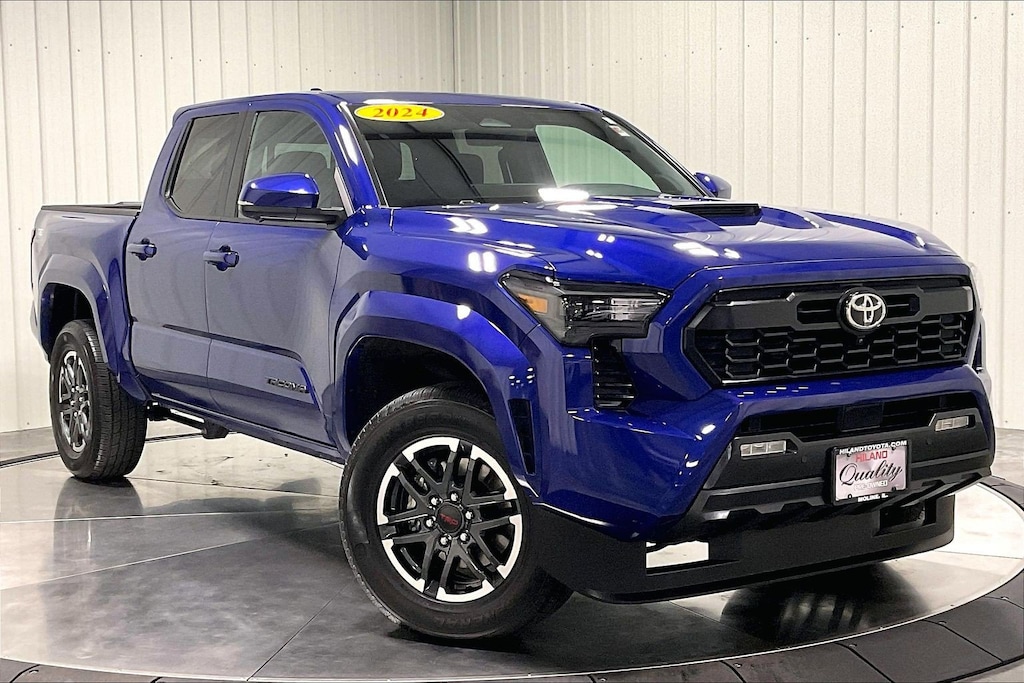 ***Sunroof***Panoramic View Monitor***Heated/Ventilated Front Seats***Heated Steering Wheel***Keyless Start***Bluetooth Connection***MP3 Player***Accident Free***One Owner -- Our 2024 Toyota Tacoma TRD Sport Double Cab 4X4 with the Premium Pack in Blue Crush Metallic dares you to push your limits! Powered by a TurboCharged 2.4 Liter i-FORCE 4 Cylinder delivering 278hp to an 8 Speed Automatic transmission. An enhanced rear suspension and an automatic limited-slip differential are standard for athletic handling, and this Four Wheel Drive truck returns nearly 24mpg on the highway. Rugged and robust, our Tacoma shows off our Premium Pack by adding a power sunroof and power up/down tailgate to LED lighting, fog lamps, alloy wheels, bed liner, LED bed lighting, a 400W/120V power supply, bed sport bar, and a Class IV hitch receiver.